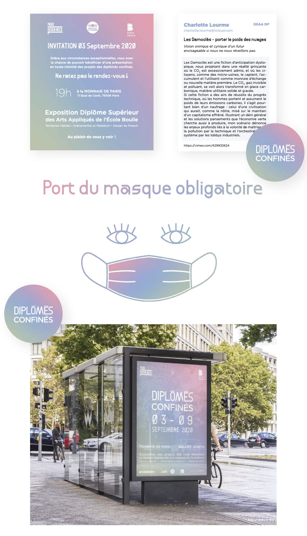De juin à septembre 2020, interlocutrice auprès de la Monnaie de Paris, je coordonne globalement cette exposition. Tous les projets de diplôme ont été réalisés dans le contexte particulier du confinement.