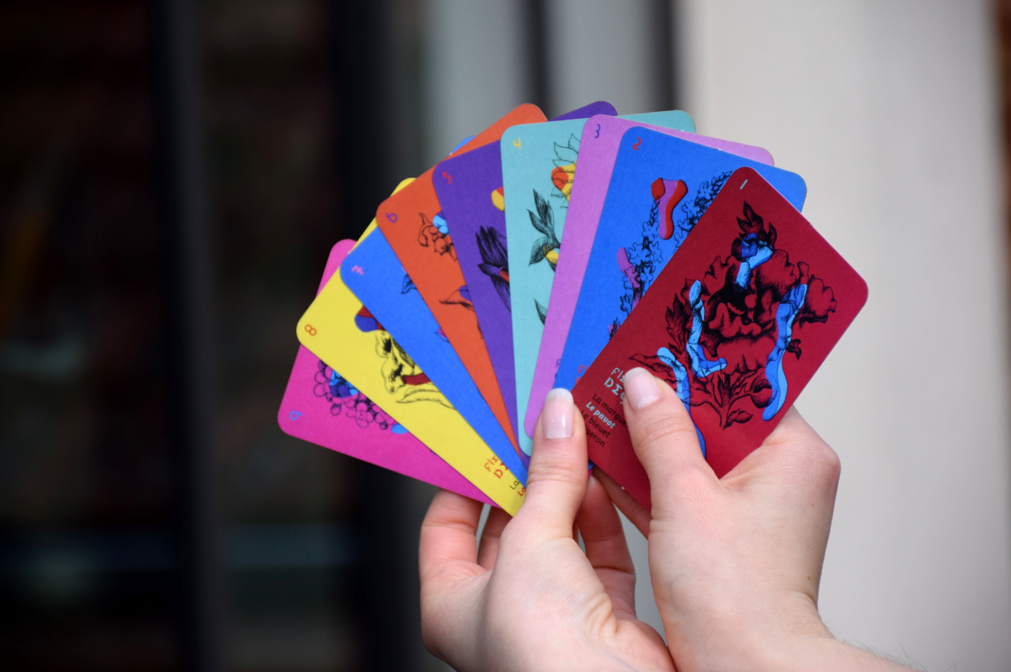 Contemporanéiser un jeu de cartes des années soixante a été le défit de mon projet de diplôme de BTS. J’ai réfléchi l’expérience utilisateurice : couleurs des différentes familles, étui qui s’ouvre entièrement et se déploie comme une fleur, packaging semblable aux sachets de graines, jeu à détacher et étui à plier soi-même.